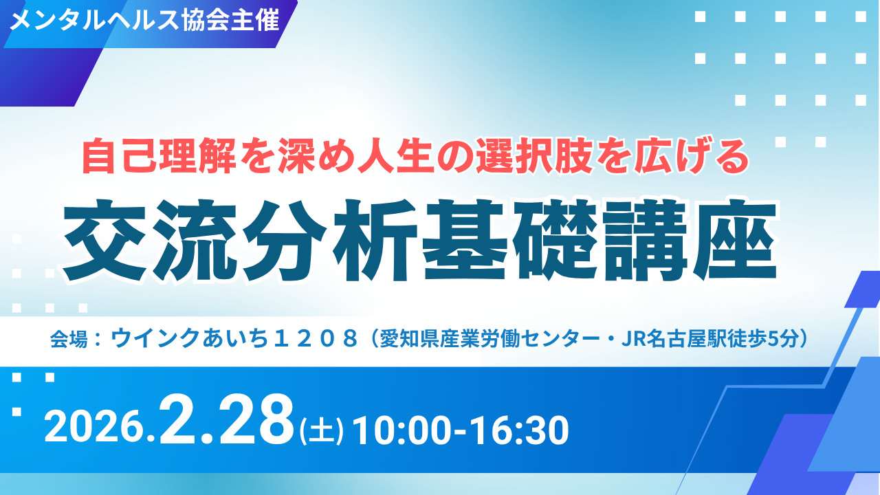 - 【メンタルヘルス協会主催】2026年2月28日(土)開催「自己理解を深め人生の選択肢を広げる 交流分析基礎講座」のご案内