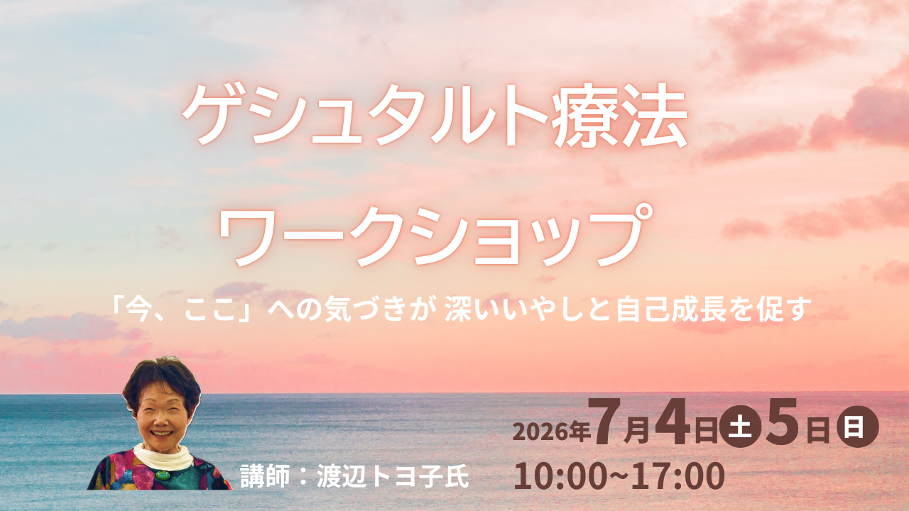 - 【開催決定!】2026年7月4日(土)・5日(日)渡辺トヨ子氏ゲシュタルト療法ワークショップ