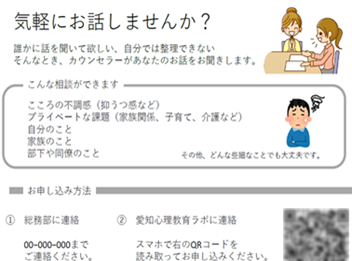 掲示や配布用の案内カード・チラシを作成をしたり、社内啓発支援と連携してご案内することが可能です。